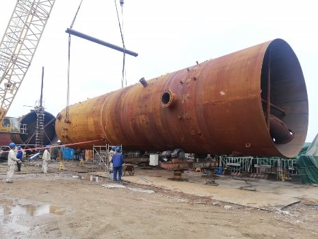 青岛金能项目是化工装备分公司继大庆龙油项目后,持续改进产品结构,在大型非标设备现场制造领域的又一创新实践。项目中标后,分公司第一时间成立项目部,对图纸转化、工艺文件准备、施工技术方案论证、材料采购配套等前期工作做了大量努力,为后期顺利施工奠定了扎实的基础。